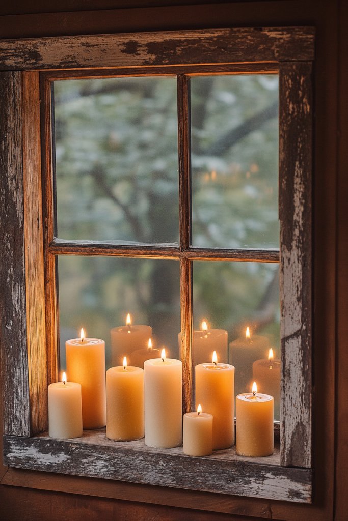 This rustic window shelf turns a simple frame into a versatile seasonal display that can evolve throughout the year. It’s a practical yet decorative addition that highlights your personal style.