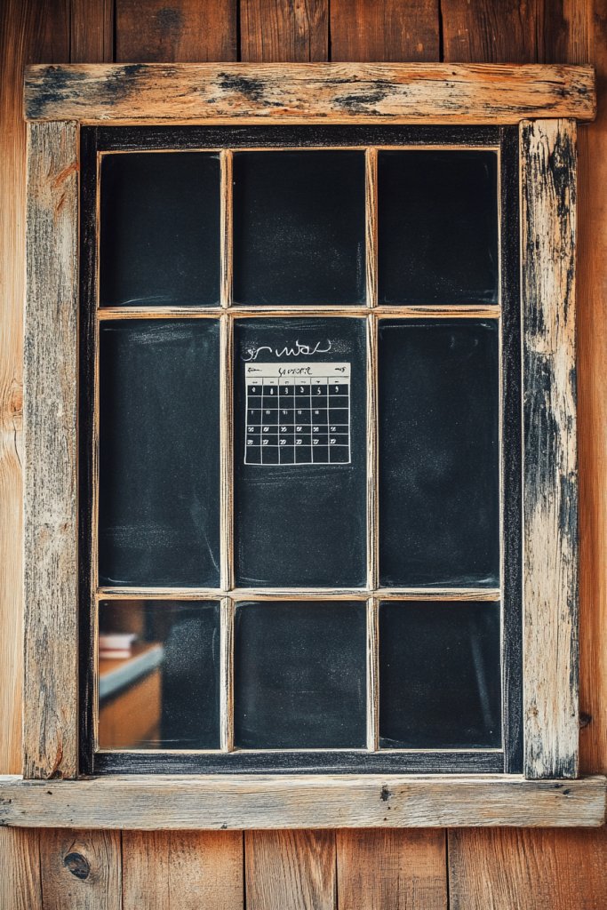 Struggling to keep track of appointments and deadlines? An old window turned into a vintage-inspired chalkboard calendar simplifies planning while adding character. It’s a functional piece that keeps your schedule front and center, all while enhancing your decor.