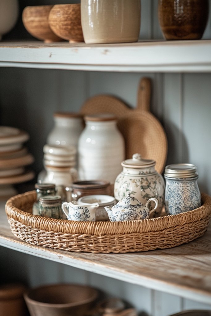 Label cabinet contents for quick access or add decorative knobs that complement your style. Incorporate seasonal decor or themed accessories on open shelves. Use textiles, like cloth liners or placemats, to add color and texture. Personal touches like vintage signs or unique hardware can elevate the entire look.