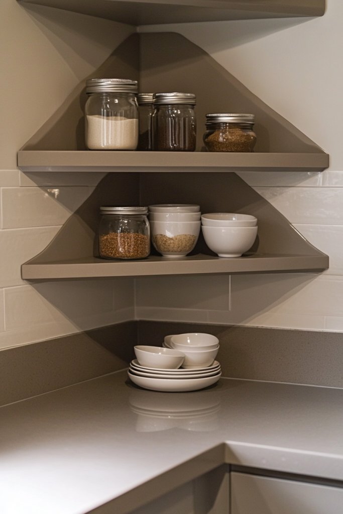 Small kitchen? No problem! Corners are often wasted space, but with clever shelving, they can become your new favorite storage spots. Corner shelving units help you utilize every inch efficiently, keeping your essentials handy without cluttering your main counters.