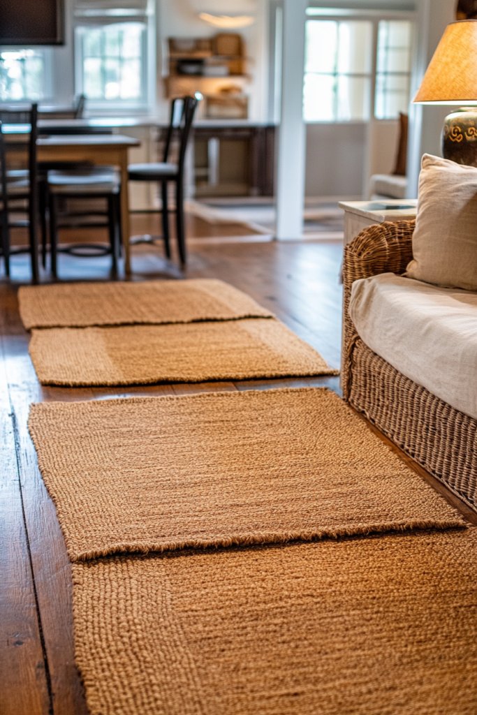 6. Add Layered Rugs in Jute, Sisal, or Wool to Create Warm, Textured Zones