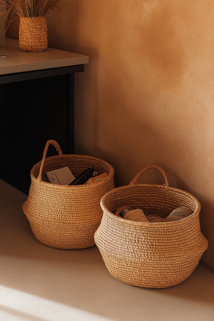 14. Place Handwoven Baskets or Bins for Organization