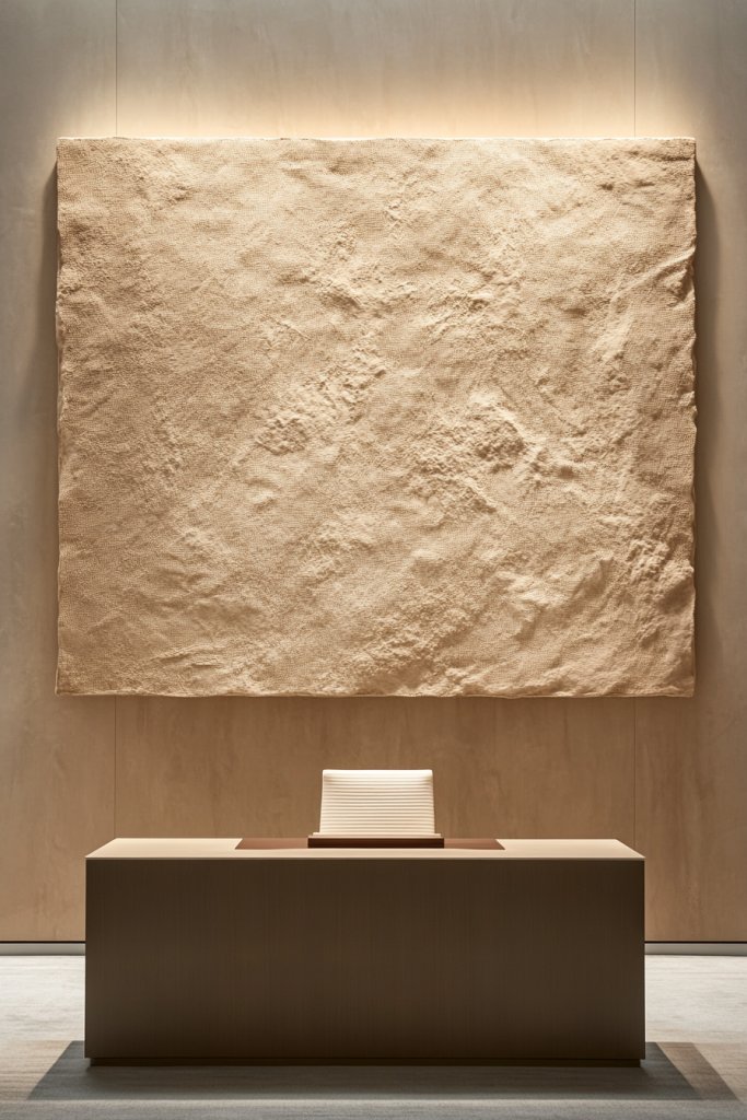 Soft, textured wall art in neutral hues elevates your space with understated elegance. It creates a backdrop that inspires calm and focus, aligning with your organic decor. When walls speak softly, your entire workspace feels more refined and intentional. Ready to decorate with subtle depth?