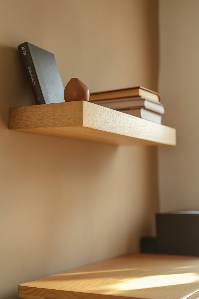 2. Install Floating Shelves with Natural Finishes