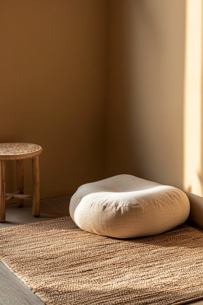 21. Create a Calm Corner with a Minimalist Floor Cushion or Pouf