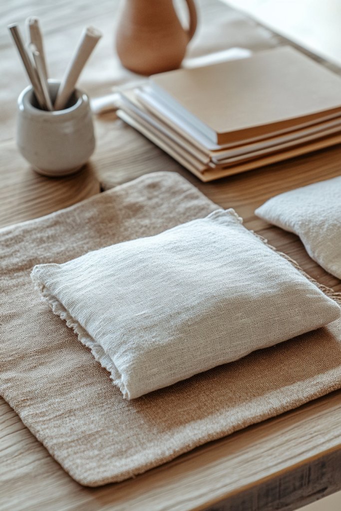 4. Use Linen or Cotton Textiles for Desk Accessories