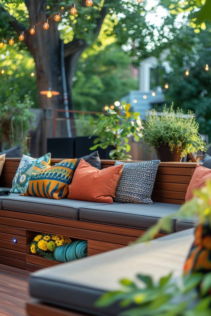 Built-in seating with storage not only maximizes your patio’s functionality but also adds a sleek, contemporary touch to your outdoor space. Imagine having a cozy nook where you can lounge while keeping your cushions, blankets, or gardening tools neatly stowed away. These seats can seamlessly blend into your patio’s design, whether you opt for wooden benches, stone seating, or sleek metal units.