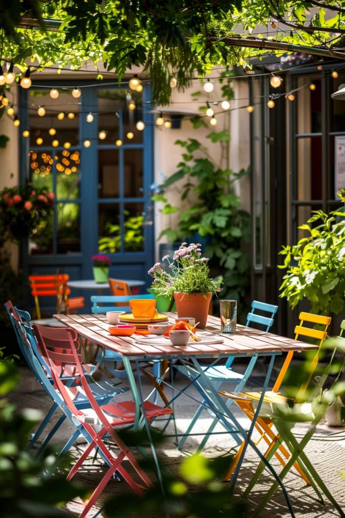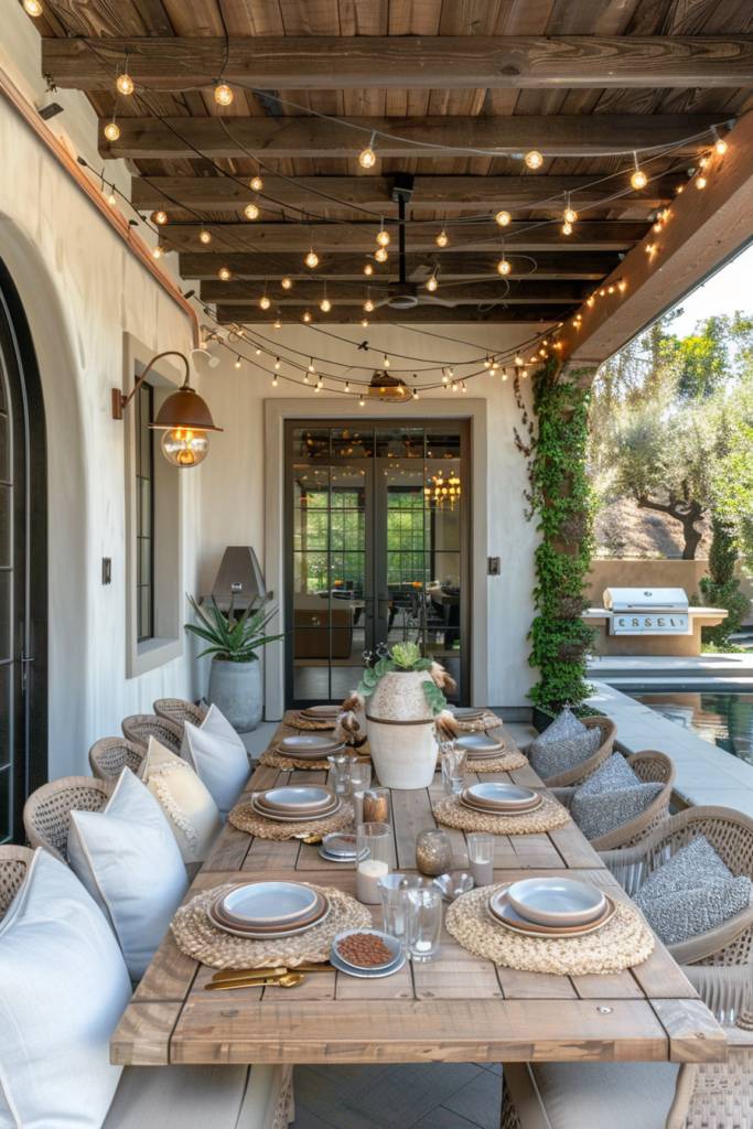 After enjoying a cozy evening around the fire pit, it’s time to elevate your outdoor experience with an elegant dining space that invites alfresco meals under the stars. Start by selecting a stylish dining table, ideally made of weather-resistant materials like teak or aluminum. Pair it with comfortable chairs adorned with cushions to enhance relaxation.