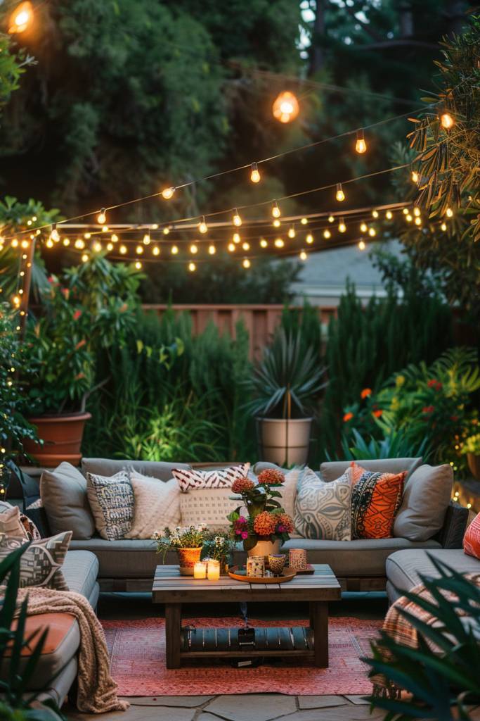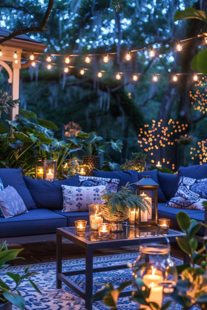 How can you create a warm and inviting atmosphere on your patio after sunset? Ambient string lighting is your answer. These twinkling lights can transform your outdoor space into a cozy retreat. Hang strands across your patio or drape them along railings and trees to create a soft glow that gently illuminates the area.