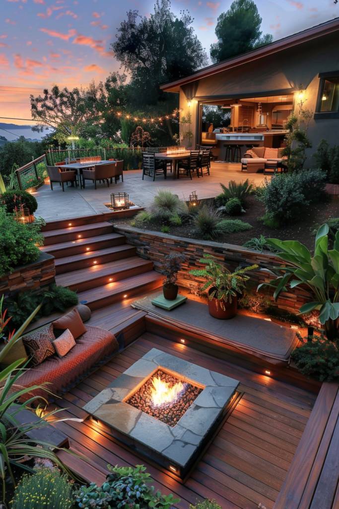 Consider using materials like stone or wood to create distinct sections, and add steps or ramps for easy access. Incorporating plants along the edges of each level can soften the look and provide a natural feel. Lighting is essential too; strategically placed fixtures can highlight each level’s unique features while creating a warm ambiance for evening gatherings. With a multi-level patio, you can craft a versatile area that elevates your outdoor entertaining experience, making it perfect for hosting friends and family.