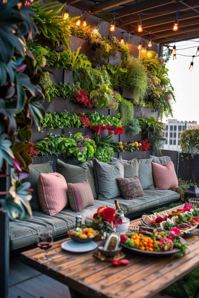 Incorporating a vertical garden invites a sense of tranquility and freshness, turning your patio into a peaceful retreat. Plus, they’re relatively easy to maintain—just guarantee proper watering and sunlight.