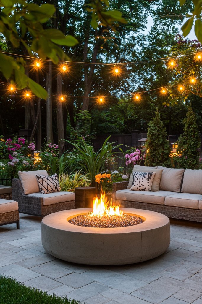 You could arrange comfortable chairs or even outdoor cushions around the fire, encouraging intimate conversations and laughter. To enhance the atmosphere, consider adding string lights overhead or lanterns along the patio edge.