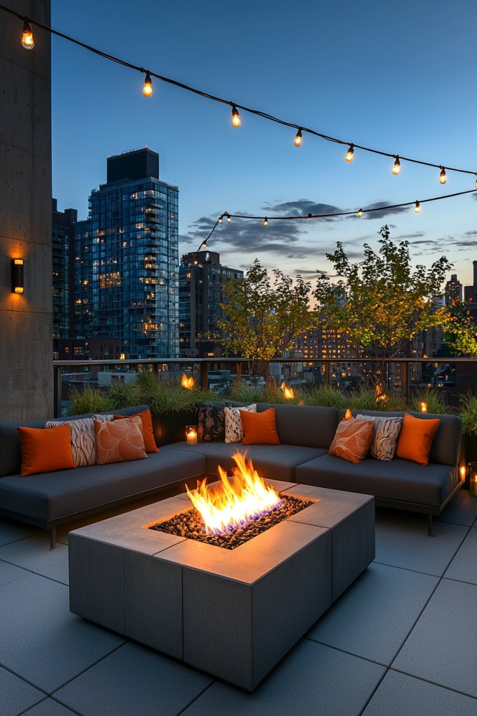 How can you transform a simple urban rooftop into an inviting oasis? Start with a sleek, portable fire pit that doesn’t overwhelm your space. Choose one that’s compact yet powerful, perfect for warming chilly evenings.