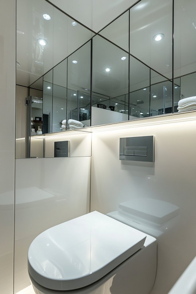 Looking for a way to save space while adding functionality? A mirrored cabinet over the toilet combines essential storage with a mirror, making your bathroom more efficient. It’s perfect for small spaces where every inch counts. Who says you can’t have style and practicality?