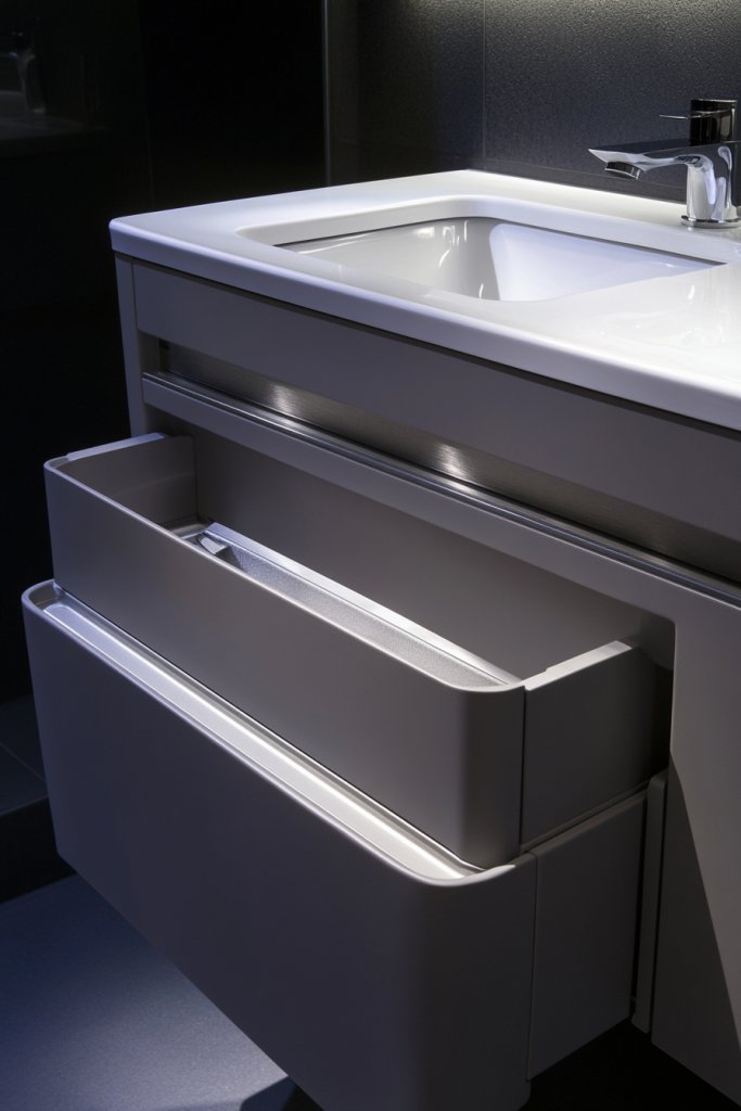 A seamless, handleless cabinet transforms your bathroom into a sleek sanctuary. It proves that minimalism and practicality can go hand in hand. Once installed, you’ll enjoy a clutter-free space that looks as good as it functions, giving you confidence in your design skills.
