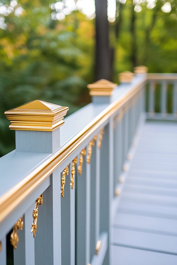 Ever wish your deck railing could have that luxe, high-end feel? Metallic accents bring instant glamour to any outdoor space. Gold, bronze, or silver details can elevate simple paint jobs into stunning focal points. It’s a subtle way to add richness and sophistication without overhauling your entire decor. Plus, metallics are surprisingly versatile and easy to incorporate.