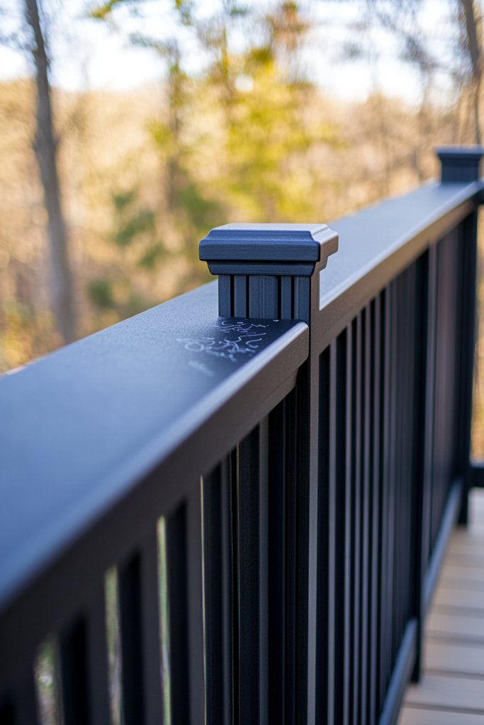 Imagine a deck with matte black railings that absorb sunlight, adding a sophisticated edge. Or picture crisp white rails that reflect the natural light, making your space feel larger and more open. The smooth, uniform surface creates a sleek silhouette against lush greenery or a cozy seating area. The simplicity of the monochrome palette emphasizes clean lines and geometric forms, giving your deck a contemporary vibe that looks flawless from every angle.