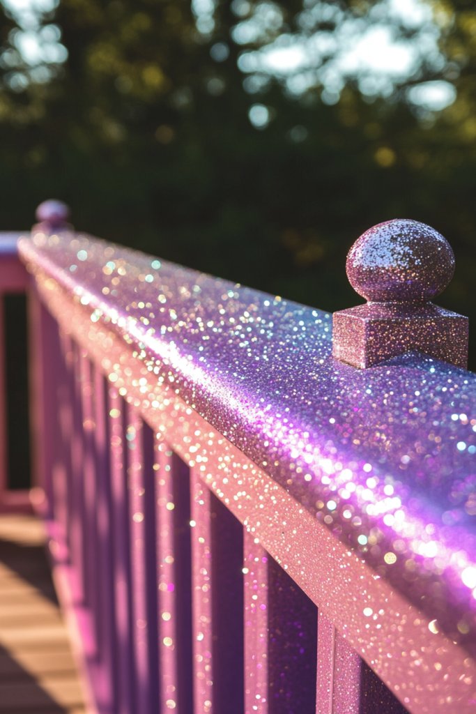 Looking to add a touch of glam to your outdoor space? An ombre effect with a hint of glitter can elevate even the simplest railing into a stunning feature. It’s perfect for parties, special occasions, or just giving your deck a luxurious upgrade. Who says outdoor decor can’t sparkle?