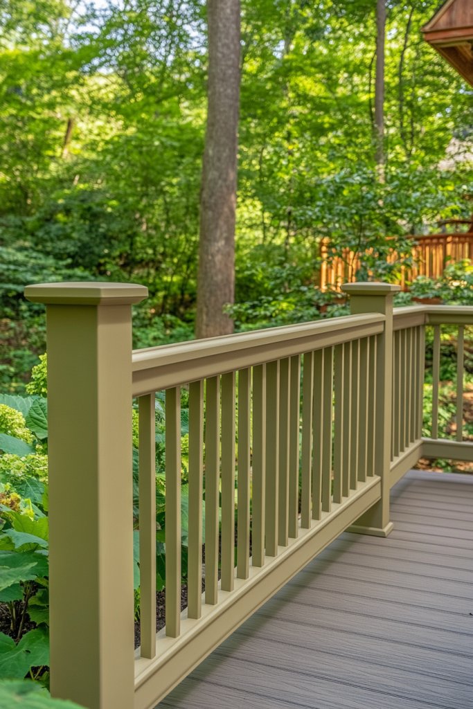 Picture your top rail painted a warm, inviting shade like terracotta or soft coral, while the balusters beneath are a contrasting hue like charcoal or navy. The sharp division catches the eye, creating a layered, dimensional look. It’s almost like a piece of modern art that invites admiration from every vantage point. The color contrast highlights the structure’s architectural lines, making the railing stand out as a feature rather than just a border.