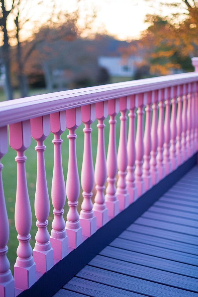 Imagine your railing painted in a delicate mint green, blush pink, or sky blue, blending seamlessly with blooming flowers and lush greenery. The matte or satin finish softens the overall look, mimicking the subtlety of watercolor art. The muted tones reflect natural light beautifully, adding a glow that enhances rather than competes with your outdoor environment. The overall effect is a peaceful, sophisticated vibe that invites relaxation.