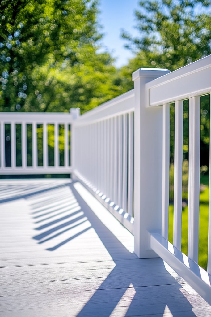 A glossy white railing is a versatile choice that never goes out of style. It’s a quick and impactful way to give your deck a fresh, upscale appearance. When you see the transformation, you’ll gain confidence in tackling other DIY projects. Sometimes, simple is best—and this timeless look proves that.