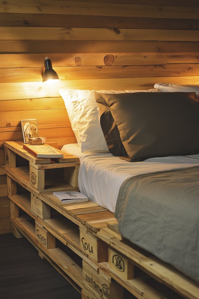 Do you struggle with clutter around your bed? A pallet bed with integrated nightstand shelves offers a sleek, space-saving solution. It combines functionality and eco-friendliness, giving you a place for essentials without extra furniture. Who said smart storage can’t look stylish?