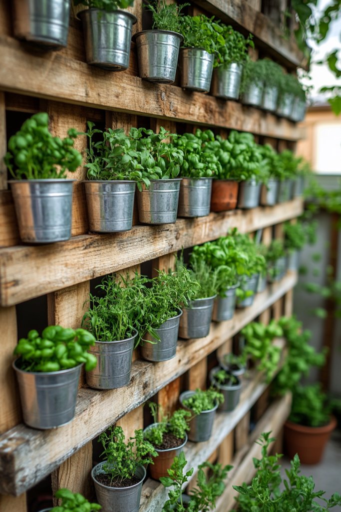 It’s a perfect blend of beauty and utility, inspiring culinary creativity right in your garden. Paint or stain the pallet in complementary shades or leave it natural for a rustic look.