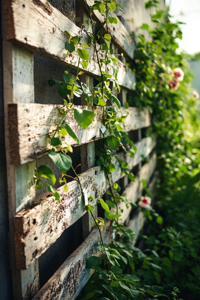 This rustic trellis can become a signature feature in your garden. A pallet trellis merges functionality with rustic beauty, helping your plants thrive while adding charm.