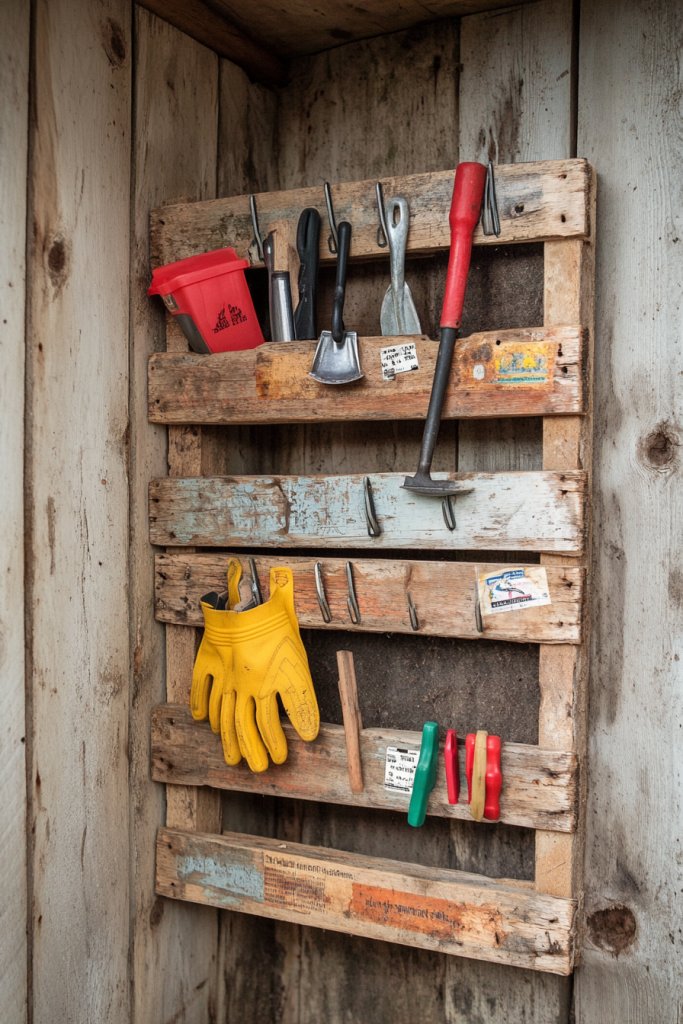 Personal touches make this tool organizer both practical and a reflection of your style. A reclaimed pallet tool organizer turns clutter into charm, making your gardening routine more efficient.