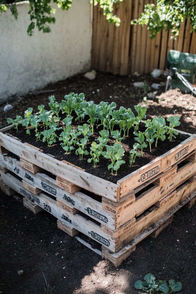 Plus, it adds a charming, farm-to-table vibe to your outdoor area. Picture a sturdy pallet laid flat, filled with dark, nutrient-rich soil.