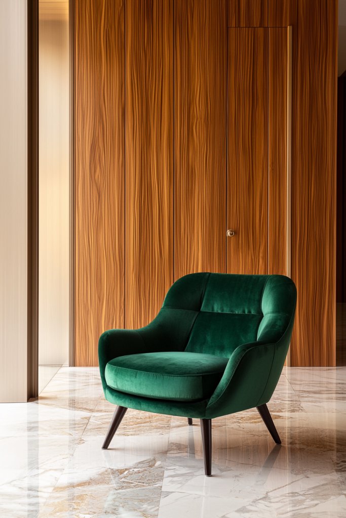 Consider using materials like glossy wood or metallic finishes that reflect light and enhance the overall ambiance. The color palette often features deep hues, such as emerald green or midnight blue, contrasted with gold or chrome accents, adding to the opulent feel.