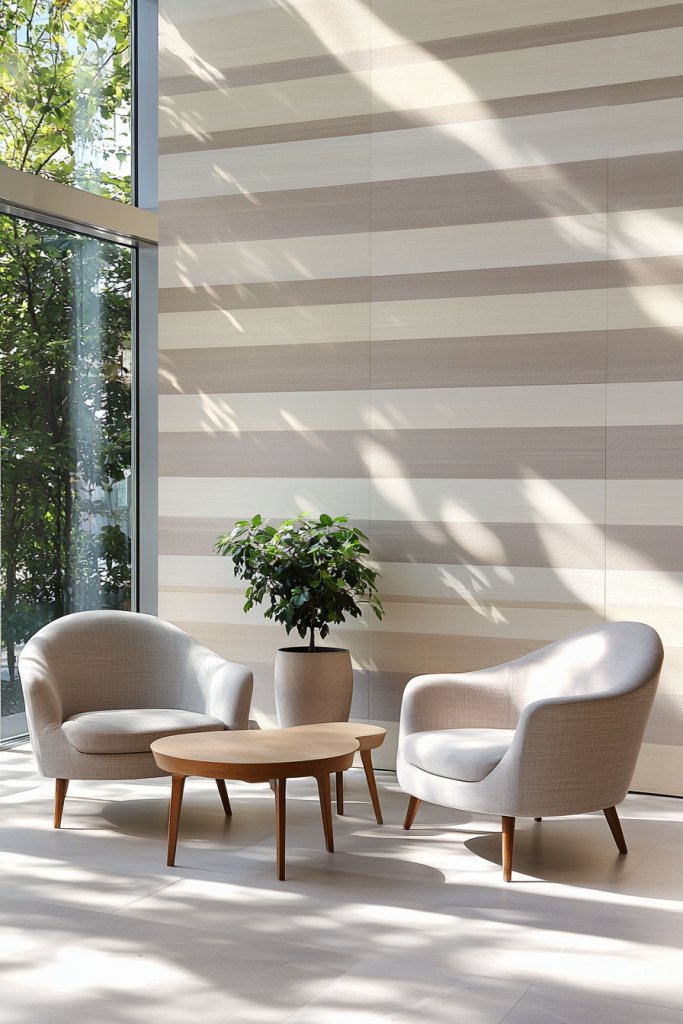 Placing them lower can ground a room, while higher stripes can elevate the ceiling’s appearance. By thoughtfully implementing horizontal stripes, you not only enrich the architectural character of your space but also invite a fresh perspective into your design.