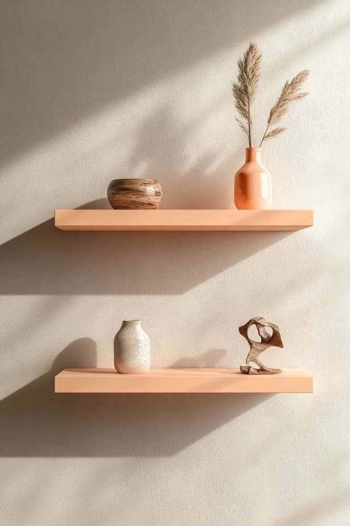 12. Floating Peach Shelves for Stylish Storage and Display