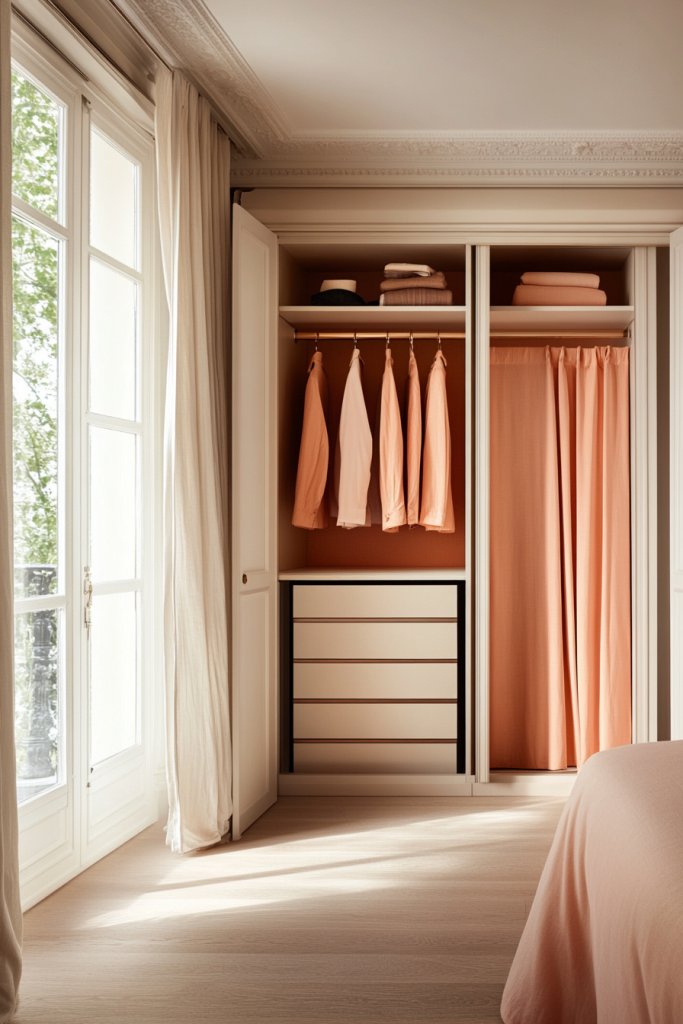 Peach-lined closet doors bring a fresh, cheerful vibe to your storage. They’re a simple update that makes your entire bedroom feel more polished. Small details like this boost confidence in your design choices and inspire more creative updates.