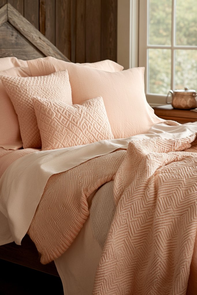 14. Warm Peach Textured Bedding for Cozy Layering