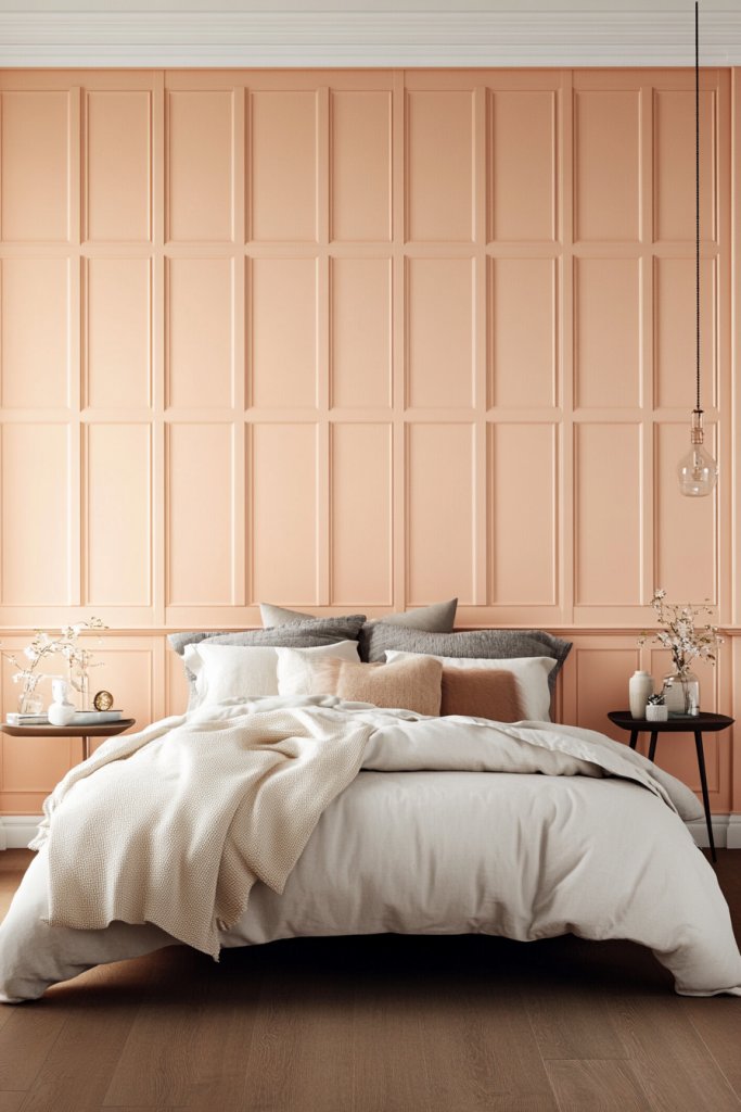 Feeling like your walls lack depth and character? Subdued peach wall paneling can introduce architectural detail that elevates your bedroom. It’s a subtle way to add sophistication without overwhelming the space. Who knew wall treatments could be so impactful?
