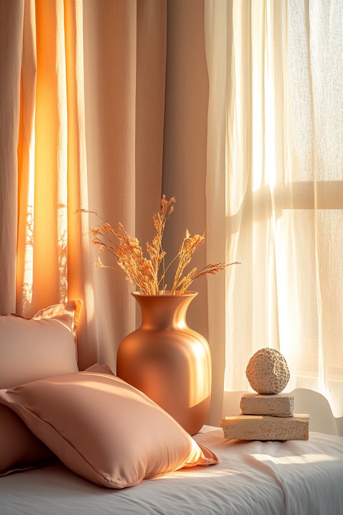 Want to tie your bedroom decor together without a major overhaul? Small accessories in peach tones are perfect for adding just the right amount of color. It’s about creating harmony and adding personality with minimal effort. Who says small can’t be impactful?