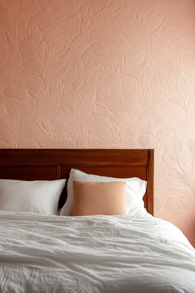 Textured peach wallpaper adds understated elegance and depth to your bedroom. It’s a subtle upgrade that makes a big difference. Once you see how the textures play with light, you’ll be inspired to experiment with other finishes and patterns.