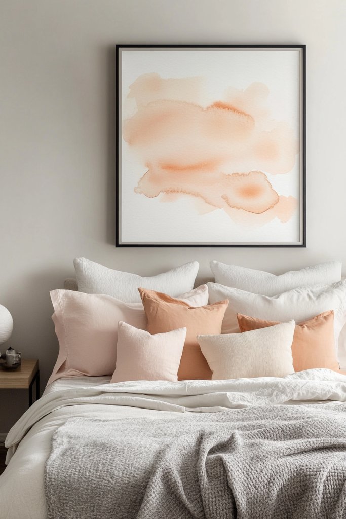 Soft peach wall art in watercolor or abstract styles adds a layer of sophistication to your bedroom. It’s a simple way to introduce color and art without overpowering the space. When you see how it transforms your walls, you’ll be inspired to explore more art styles and displays.