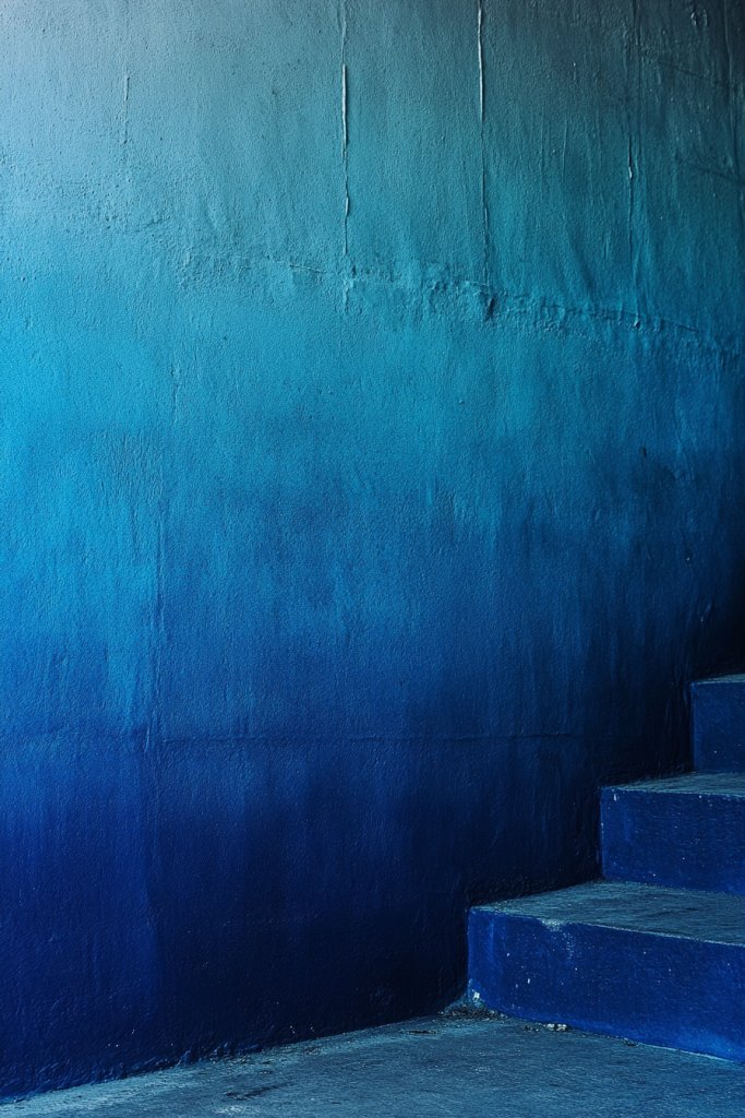 Picture a wall where the blue transitions gradually from a light, airy teal at the top to a deep, rich peacock hue at the bottom. The gradient creates a sense of movement and flow, drawing the eye across the room. The textured finish adds visual interest, while soft lighting enhances the layered shades. It’s like bringing an abstract painting into your space.