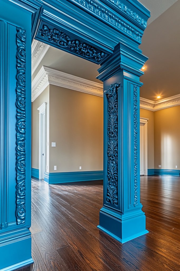 5. Peacock Blue Trim and Molding for Elegant Architectural Detail