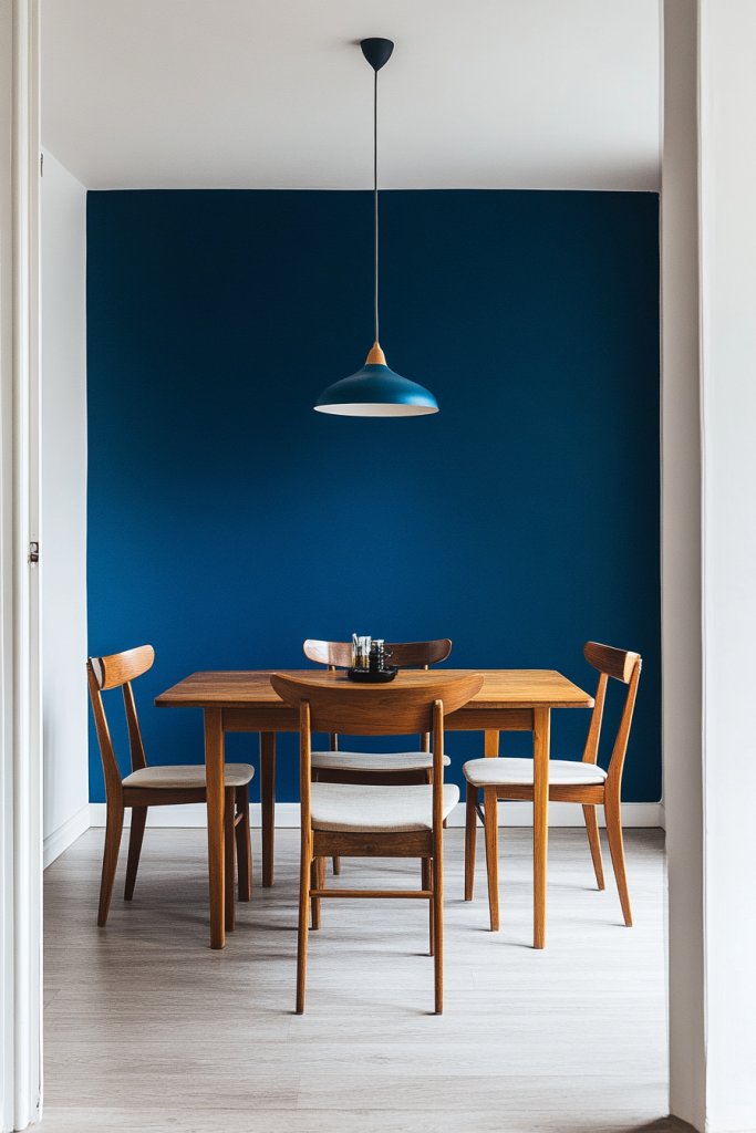 8. Peacock Blue Accent Wall in a Minimalist Dining Room