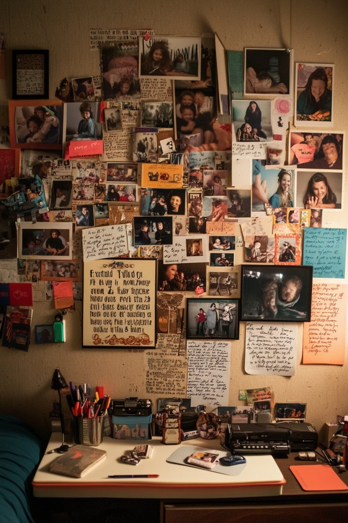 9. Multimedia Wall with Photos, Quotes, and Personal Mementos
