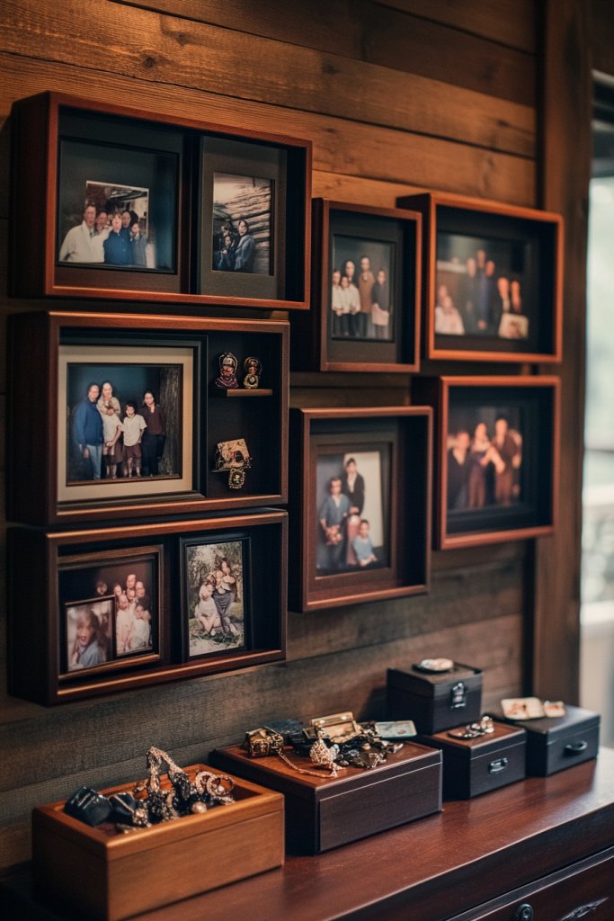 10. Shadow Box Frames with 3D Family Keepsakes and Photos