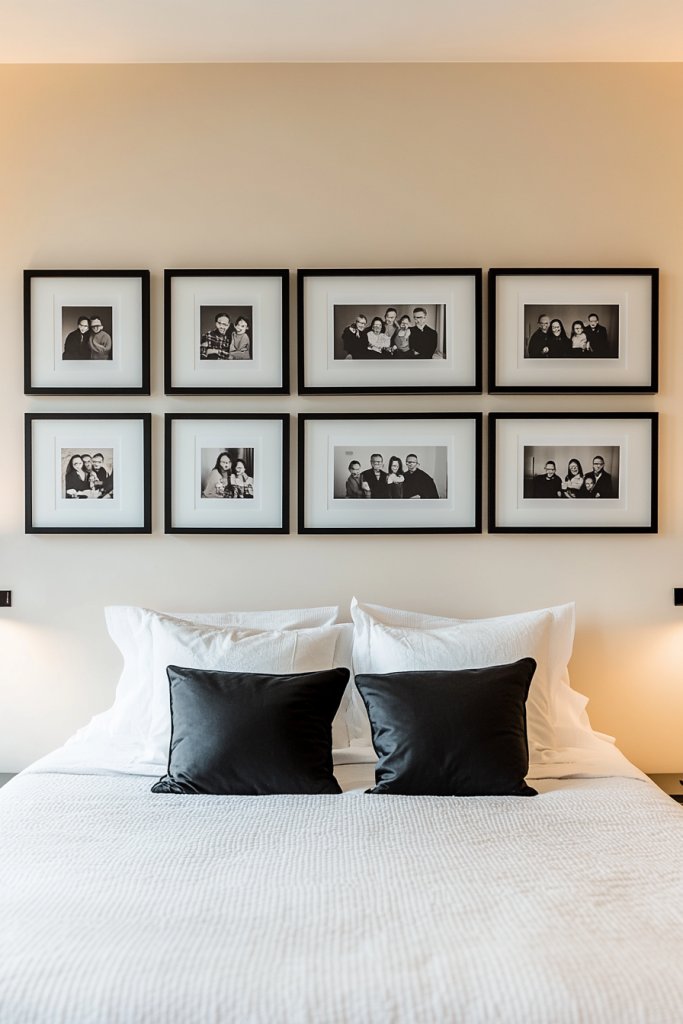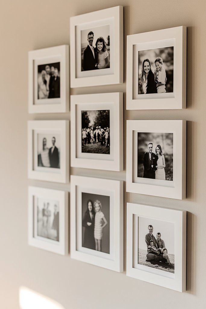 7. Monochrome Photo Wall for a Sophisticated, Timeless Look