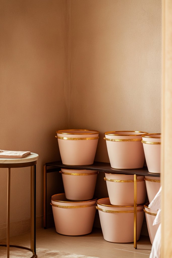 Clutter can kill your bedroom vibe faster than anything. Gold-accented storage baskets in pink tones solve this by offering a pretty, practical solution. They hide away chaos and add a pop of color with a luxe twist. But how to keep things looking stylish and not cluttered? The secret is in selective placement and quality materials.