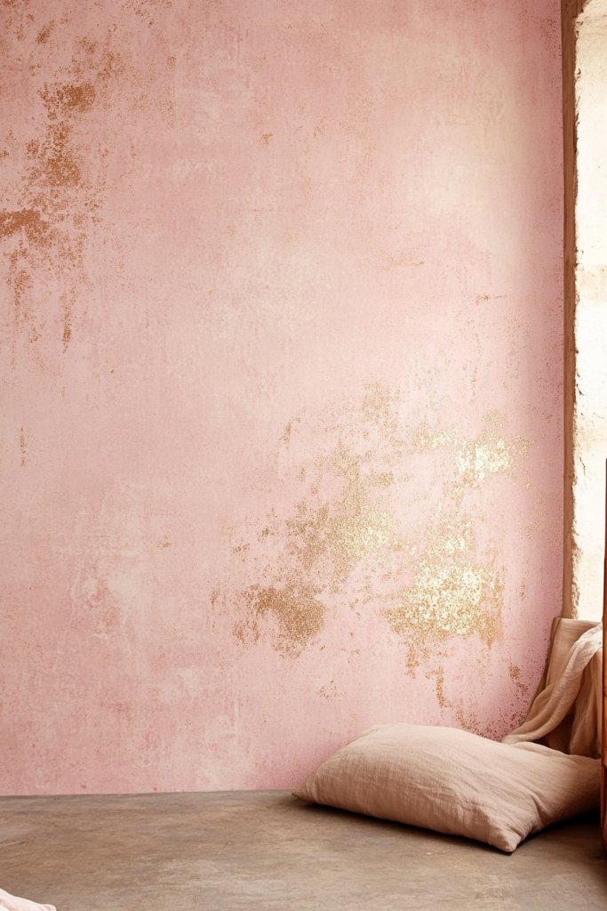 18. Subtle Pink Wallpaper with Gold Foil Details