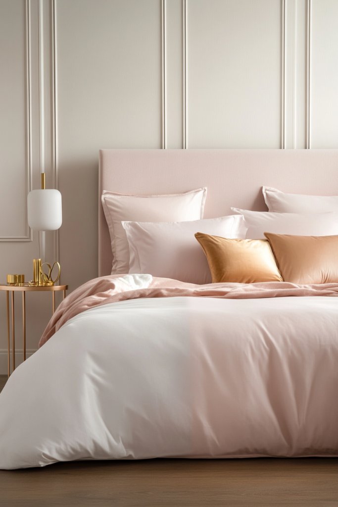 Adjust the level of minimalism based on your taste—some may prefer just a few gold accents, while others opt for a mostly monochromatic palette with tiny hints of pink. Incorporate functional elements like sleek storage solutions or hidden compartments to keep things tidy. Seasonal updates can include swapping textiles—think a lightweight pink linen sheet set in summer or a cozy velvet pillow in winter. This style works well in small rooms, as it visually expands the space, or in large rooms to create a calm focal point.