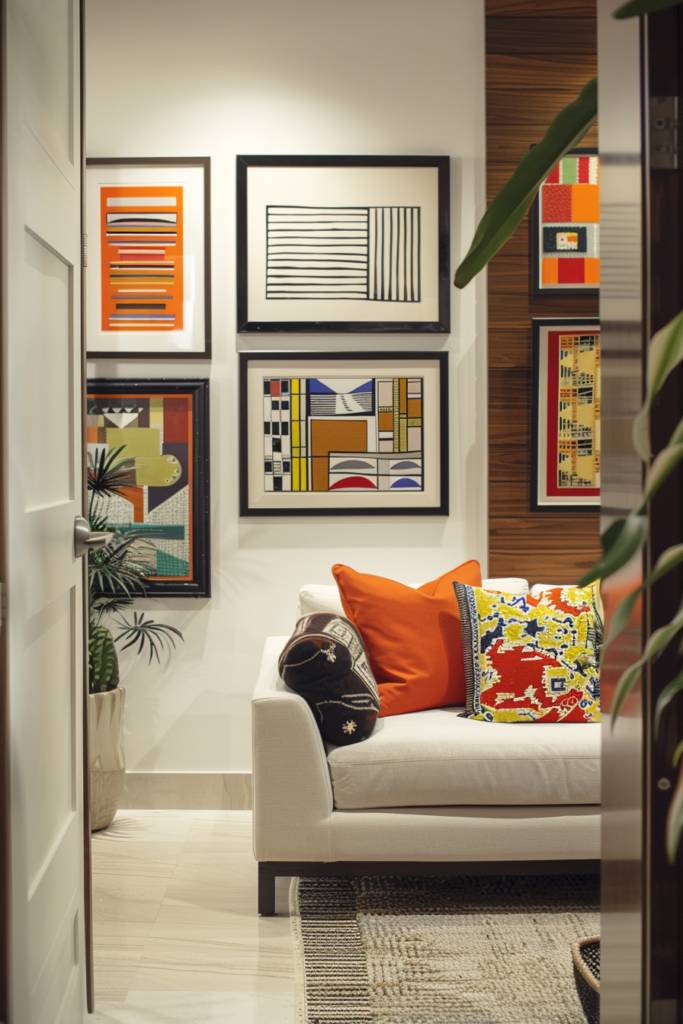 Building on the impact of oversized art, creating a gallery wall can elevate your living space to new artistic heights. It’s not just about hanging pictures; it’s an opportunity to express your personality and style. Start by selecting a cohesive theme, whether it’s a color palette, a specific artist, or a mix of textures. Lay out your chosen art pieces on the floor first to visualize the arrangement before hammering any nails.