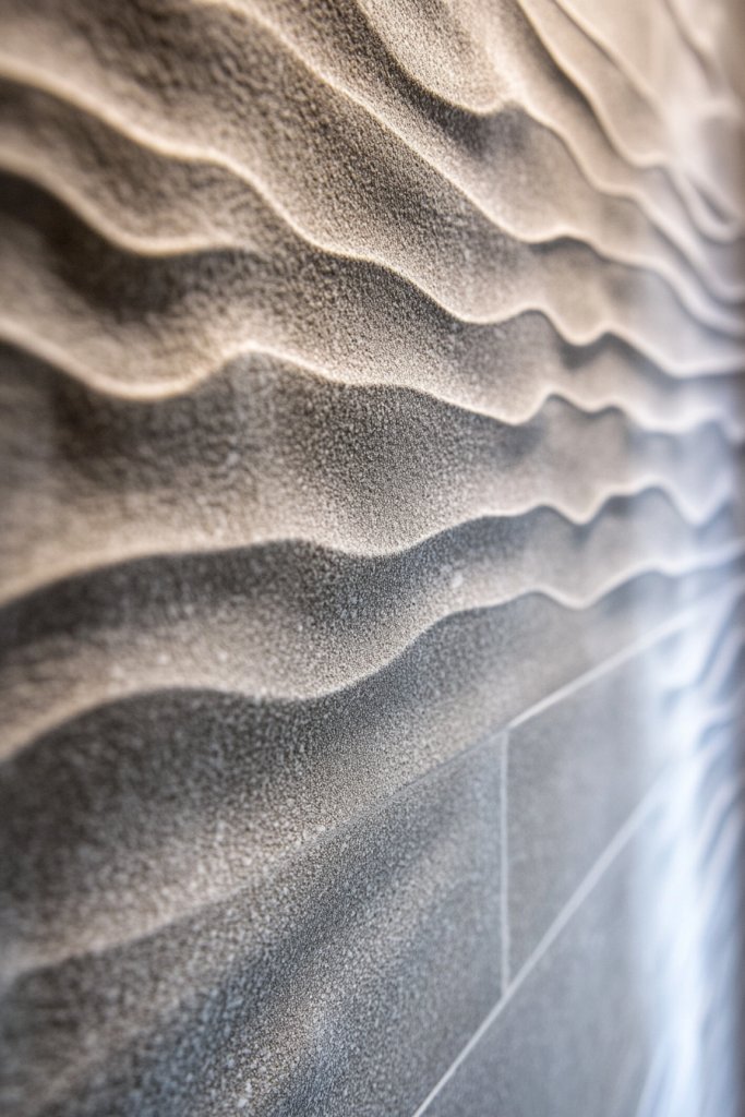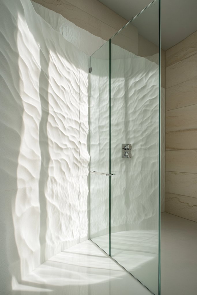 Incorporate sculptural shelves or niches in the same textured porcelain for functional decor. Use lighting that accentuates the surface’s shadows and highlights. Complement textures with soft, plush towels or textured textiles in complementary colors. Personalize your space with subtle color accents or layered materials that enhance the tactile experience.